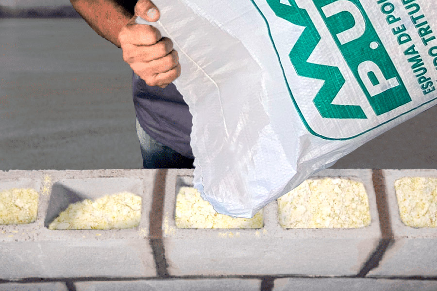 Possui excelente custo-benefício no preenchimento de volumes ocos na construção civil, o que proporciona maior leveza e isolamento termo-acústico.