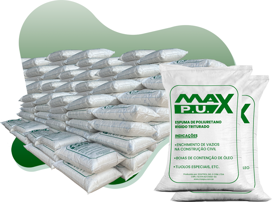 Com o objetivo de viabilizar soluções práticas, versáteis e sustentáveis, o Max P.U. é um Poliuretano Rígido Triturado e sua utilização é possível para diversas aplicações. O Poliuretano Rígido Triturado é um material produzido a partir de aparas de processos produtivos e suas principais características são o isolamento térmico, por possuir baixa condutividade térmica, a absorção de material oleoso, por sua característica de ser um excelente absorvedor e como componente em processos industriais, quando misturado com outros componentes, como, por exemplo, na fabricação de tijolos e assemelhados. Também pode ser utilizado para o preenchimento de vazios e espaços na construção civil que precisem de material leve e de custo acessível de preenchimento.